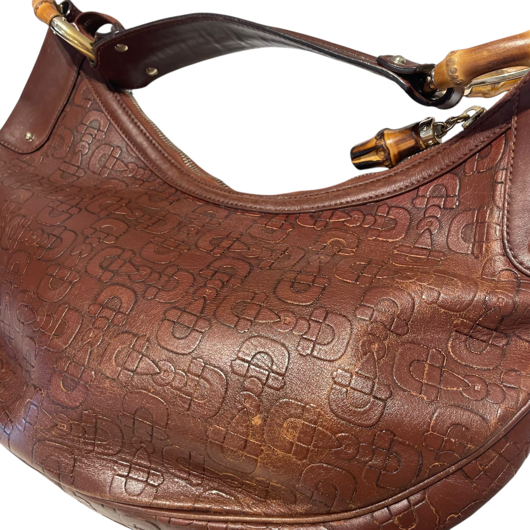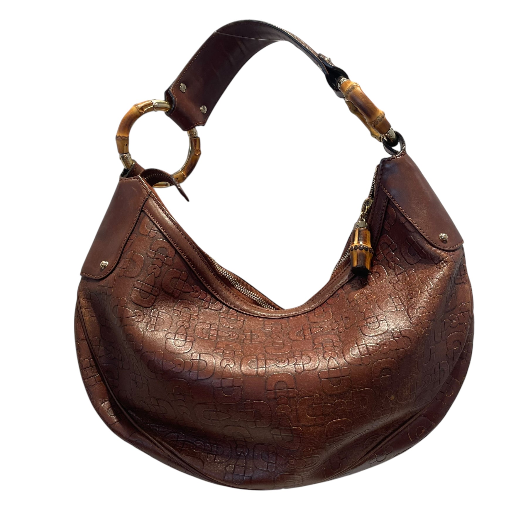 GUCCI/Hand Bag/Leather/BRW/BAMBOO RING HALF MOON