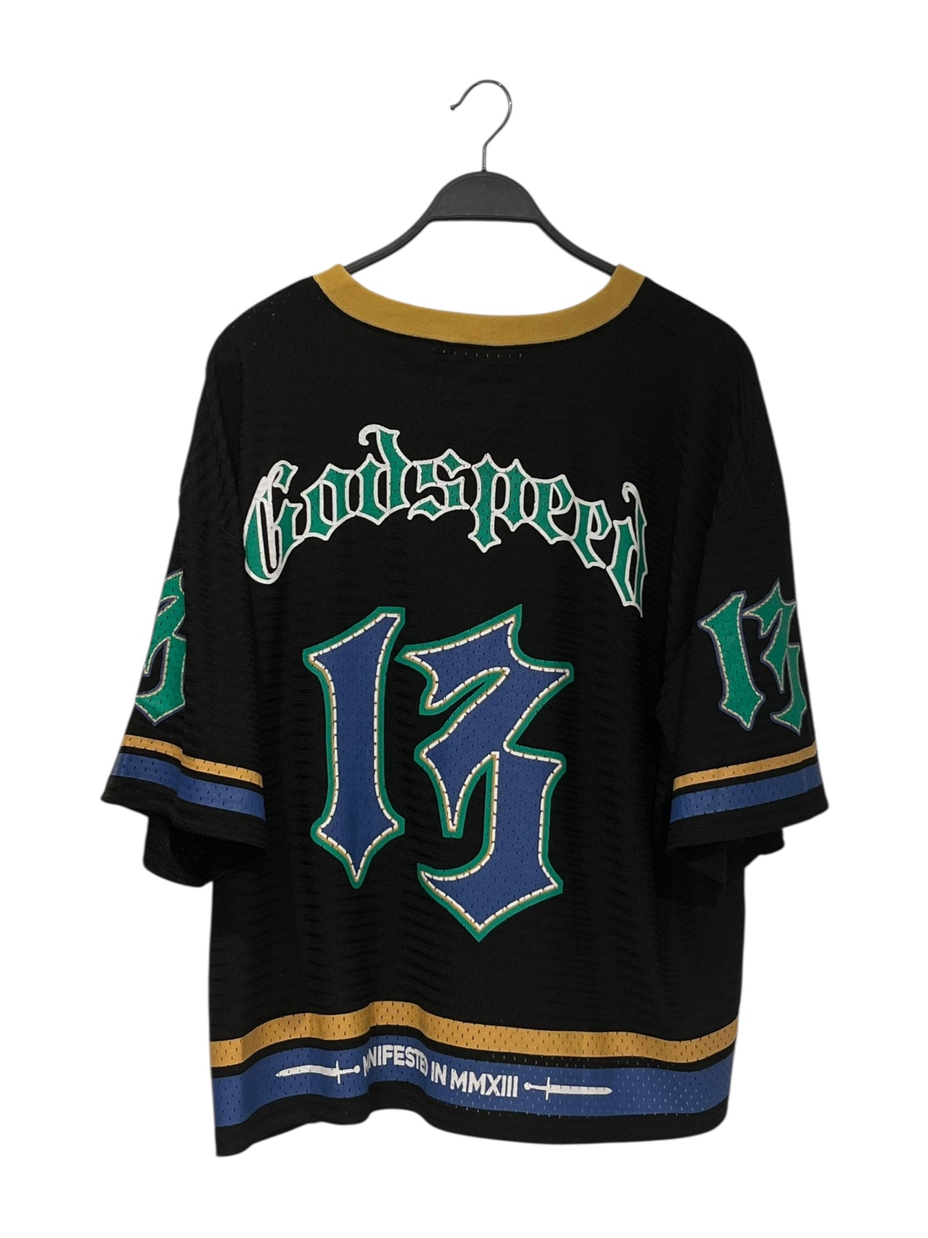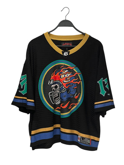 GODSPEED NEW YORK/T-Shirt/M/Cotton/BLK/flaming football skull yellow